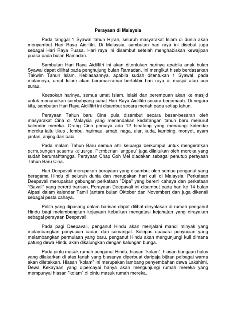 Perayaan Perayaan Di Malaysia Contoh Karangan Get link. Orang Cina percaya ada 12 binatang yang menaungi kalendar mereka iaitu tikus lembu harimau arnab naga ular kuda kambing monyet ayam jantan anjing dan babi. Agama Islam mengajar umatnya untuk berlaku adil kepada manusia lain dan menyebarkan ilmu yang dimiliki kepada orang lain tanpa mengira waktu.